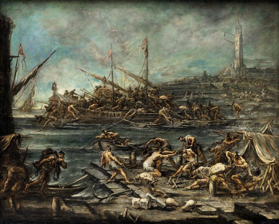 Alessandro Magnasco dit Il Lissandro (1667-1749), Embarquement des galériens dans le port de Gênes, Gênes (Italie), XVIIe siècle. Huile sur toile, 116 x 143 cm. Bordeaux, musée des Beaux-Arts de Bordeaux.