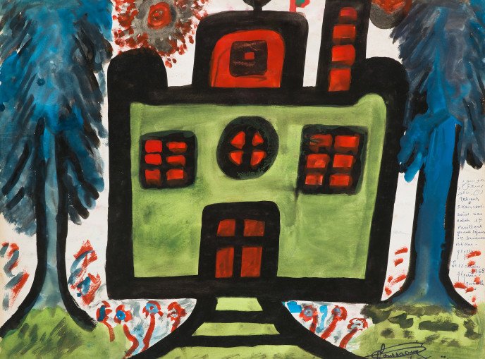 En 2021, le musée de l’Institut du monde arabe reçoit une généreuse donation : un ensemble d’archives, de céramiques peintes et de nombreuses planches dessinées à la gouache, exécutées à la fin des années 1960 au cours d’ateliers de socialthérapie menés à l’hôpital psychiatrique de Blida-Joinville (HPB), institution algérienne marquée par la figure emblématique de Frantz Fanon.