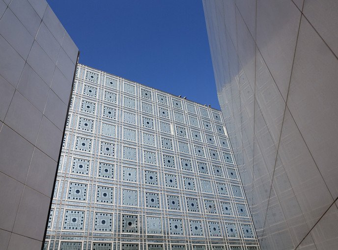 Symbole architectural moderne du dialogue entre la culture occidentale et le monde arabe, édifié sur les bords de Seine, l'Institut du monde arabe est inauguré au public en décembre 1987. Ce bâtiment a été conçu et réalisé par une équipe d’architectes constituée de Jean Nouvel, Architecture Studio ( Martin Robain, Rodo Tisnado, Jean-François Bonne, Jean-François Galmiche), Gilbert Lèzenes et Pierre Soria.