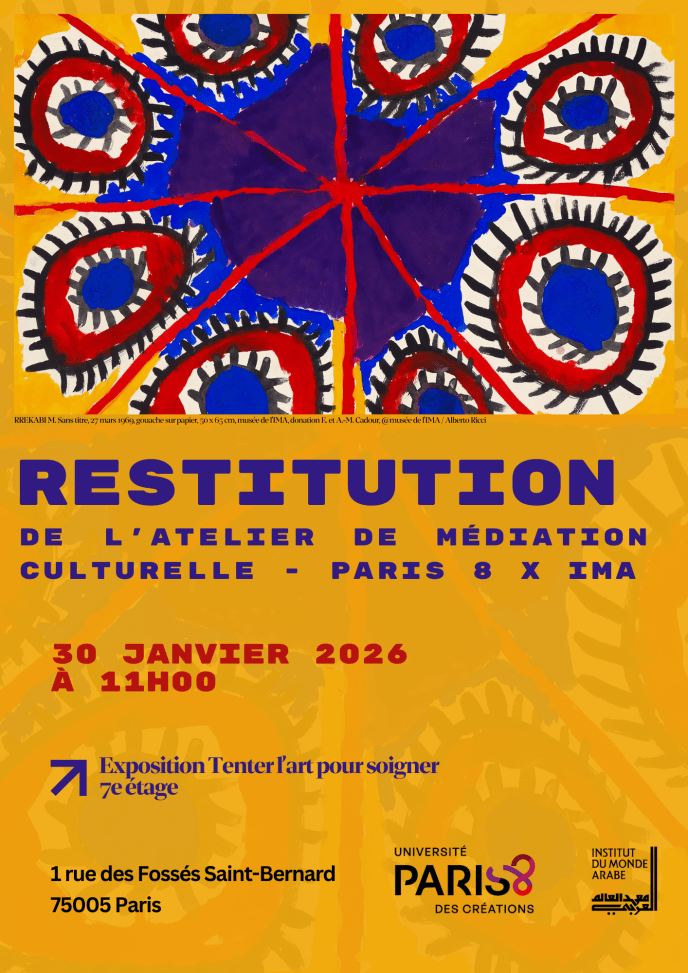 Le service des Actions éducatives de l'Institut du monde arabe a eu le grand plaisir d'accueillir, vendredi 30 janvier, la restitution d'un travail mené par des étudiant·e·s du Master de Sciences sociales “Mondes Méditerranéens en Mouvement” de l’Université Paris 8 Vincennes-Saint-Denis, en partenariat avec l’IMA, autour du psychiatre Frantz Fanon.