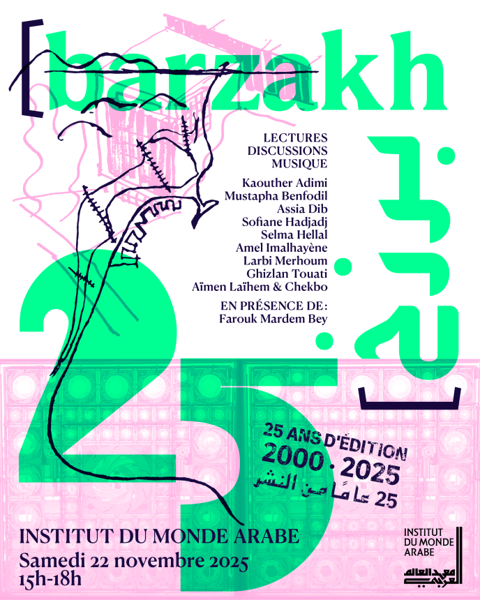 - 16h45-17h15 : Conversation à propos de « l’aventure dibienne » de Barzakh et présentation du podcast des Contes de Mohammed Dib coproduit par l’Institut du monde arabe et l’Institut Français.