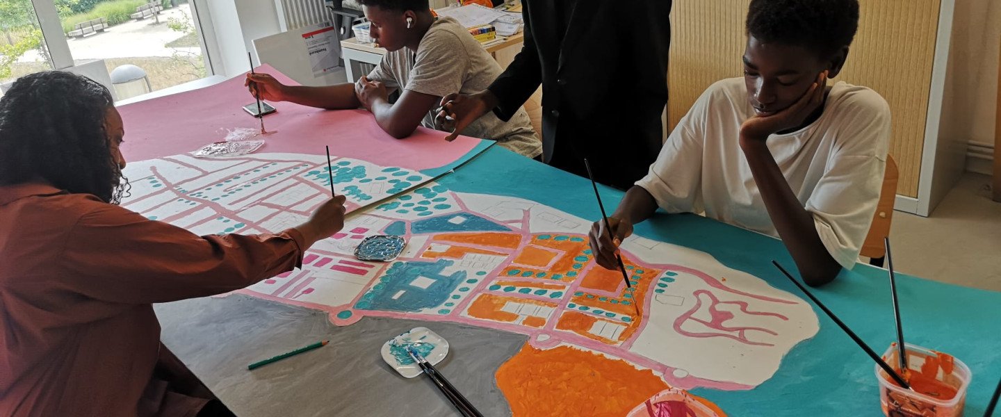 En partenariat avec le Pôle culturel de proximité Molière et l’espace Georges Brassens, tous deux situés dans le quartier Cinq Quartiers de la ville des Mureaux, l’Institut du monde arabe a proposé à un groupe de 20 résidents âgés de 16 à 25 ans de concevoir une ville du futur idéale, écologique et durable en puisant à la fois à la tradition arabe et à leur environnement immédiat.