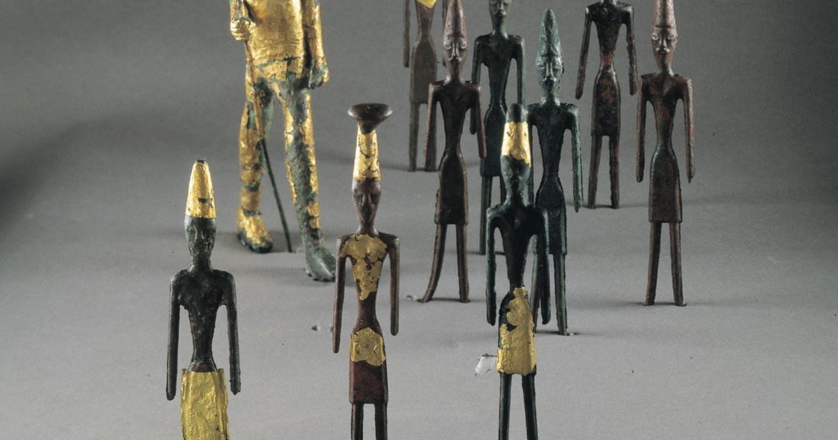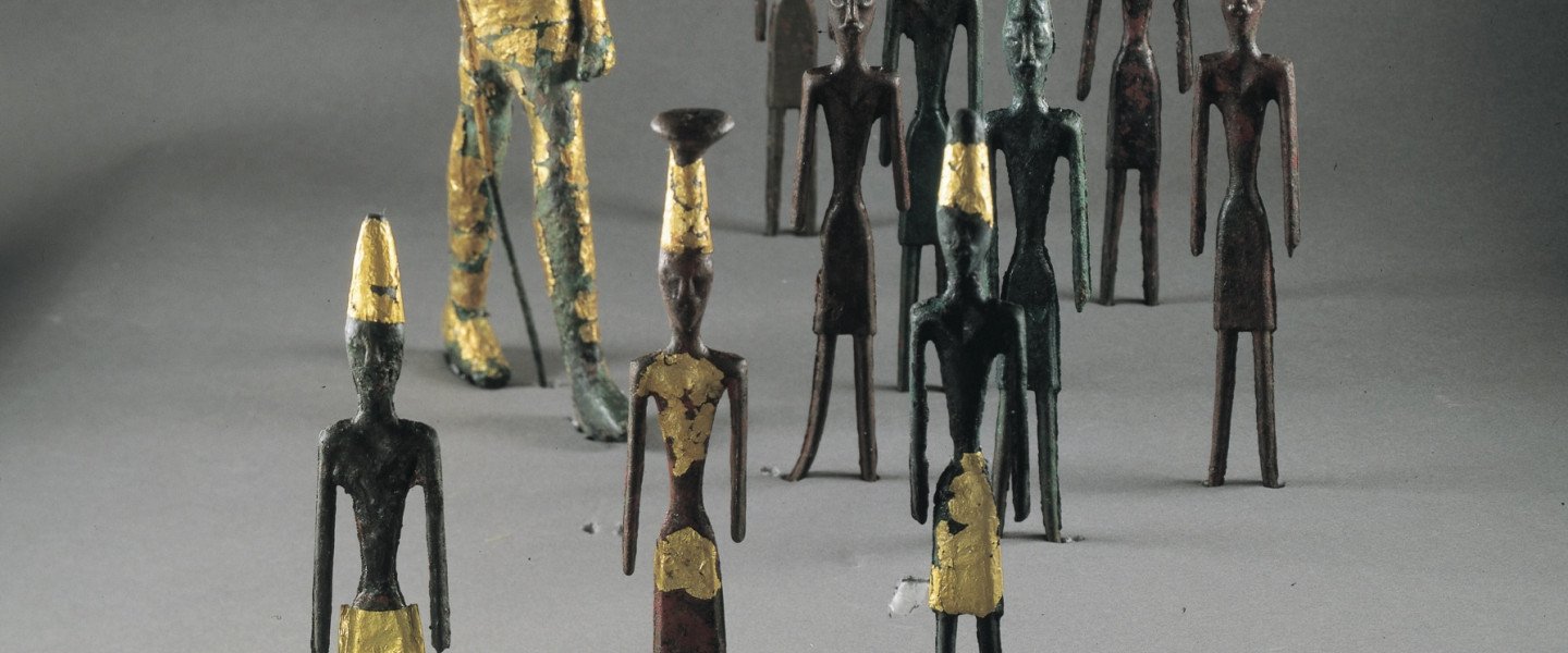 Haches fenestrées à décor animalier. Byblos, temple aux Obélisques, âge du Bronze moyen, or. Beyrouth, Direction générale des Antiquités.
