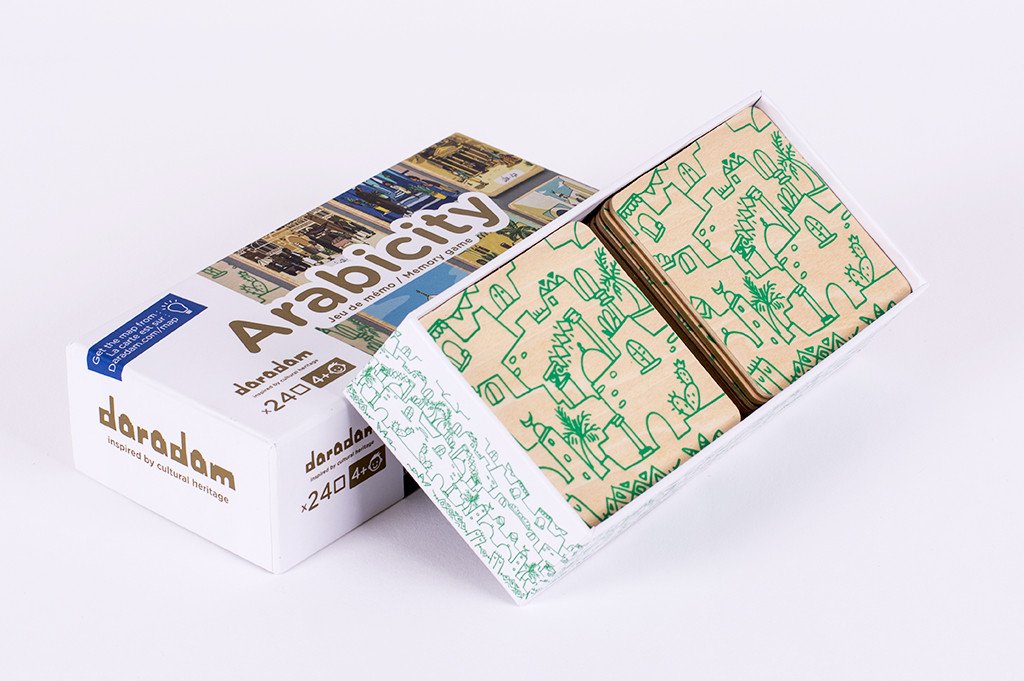Après Arabicubes pour l’apprentissage ludique de l’alphabet arabe, et Arabicouples qui nous faisait découvrir les costumes du monde arabe, les éditions Daradam viendront jouer avec nous à Arabcity, un jeu éducatif pour explorer l’architecture des villes arabes.