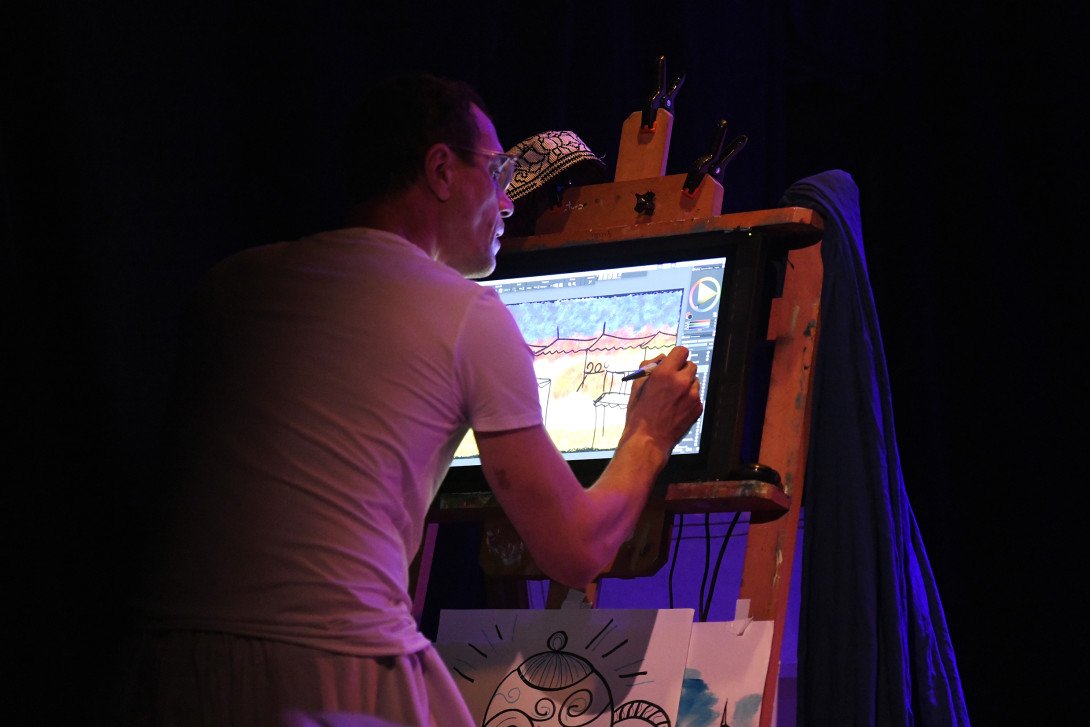 Dans ce spectacle malicieux, la tradition rencontre la modernité, la parole rencontre la musique… et de magnifiques tableaux en peinture numérique réalisés en direct. Un spectacle complet et loufoque, imaginé et joué par VALÉRIE DA MOTA & ROMANS SUAREZ PAZOS, et la compagnie Va Sano Productions.