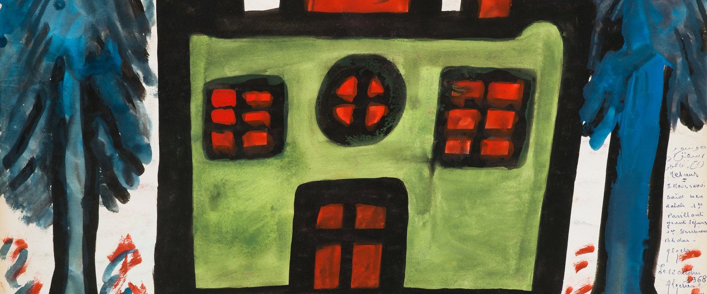 En 2021, le musée de l’Institut du monde arabe reçoit une généreuse donation : un ensemble d’archives, de céramiques peintes et de nombreuses planches dessinées à la gouache, exécutées à la fin des années 1960 au cours d’ateliers de socialthérapie menés à l’hôpital psychiatrique de Blida-Joinville (HPB), institution algérienne marquée par la figure emblématique de Frantz Fanon.