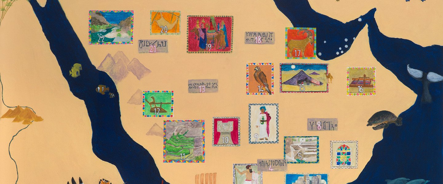 Les enfants découvrent les richesses de l’Arabie dans le musée puis, guidés par la huppe, partent sur les traces de la reine de Saba, depuis l’Arabie heureuse jusqu’à Jérusalem. Au cours de ce périple ponctué d’énigmes, l’histoire et la mythologie se croisent et l’on rencontre des personnages fabuleux et des animaux extraordinaires