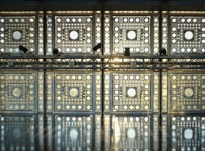 Parcourez le bâtiment de l'Institut du monde arabe, patrimoine de l'architecture contemporaine, conçu par Jean Nouvel associé à Pierre Soria, Gilbert Lézénès et Architecture Studio.