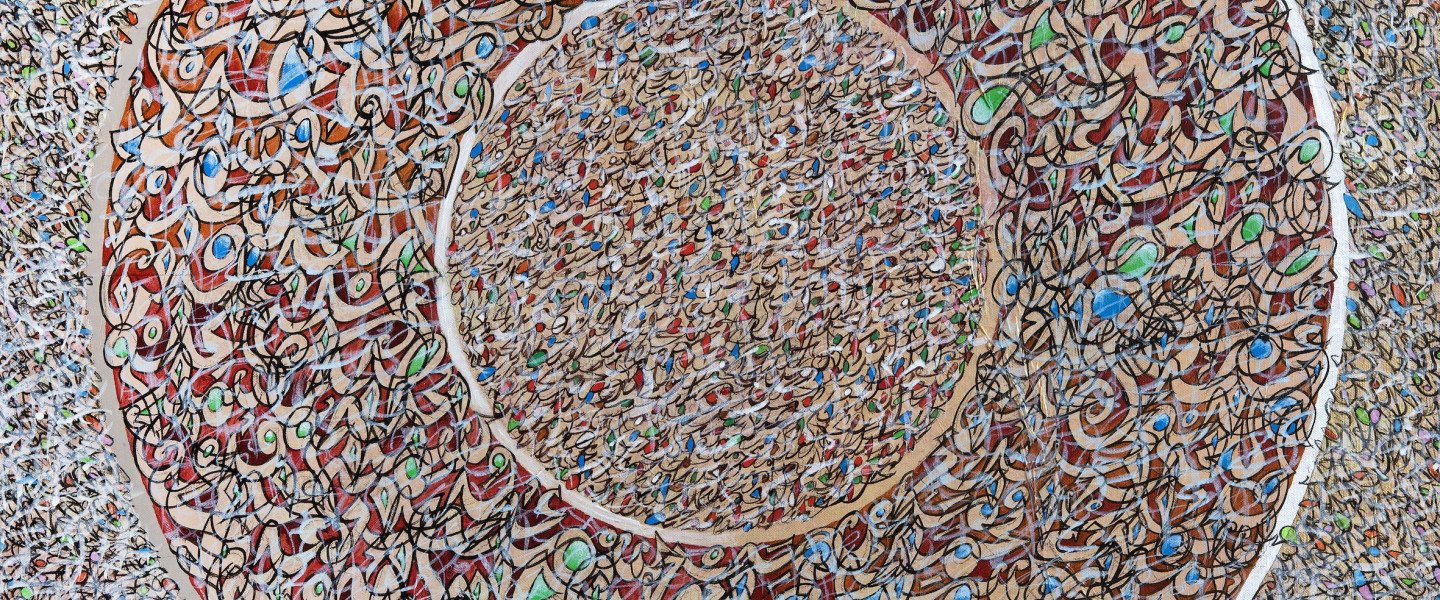 L'Institut du monde arabe consacre une rétrospective de l'artiste franco-marocain Mehdi Qobti. Tisseur d'écriture, il puise son identité dans sa culture et son patrimoine : motifs des zelliges et des tapis de son enfance ; beauté et mysticisme de la calligraphie arabe dans un style moderne et abstrait.