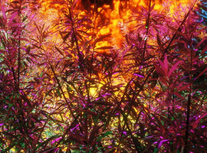 Firewalk propose une promenade de nuit dans une forêt en feu, pré-apocalyptique, proche de la destruction imminente. L’incendie indique une catastrophe à venir, ou une passerelle métaphysique entre les réalités.