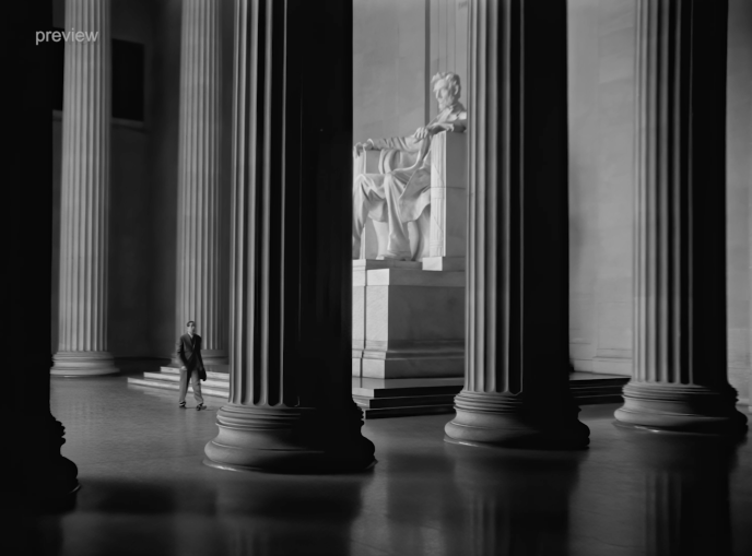Le réalisateur sape la narration cinématographique habituelle du film classique hollywoodien Mr. Smith au Sénat. L’intrigue ne progresse pas, l’architecture néoclassique du Lincoln Memorial devenant un décor pour un rituel, le protagoniste se perdant entre les piliers du bâtiment.