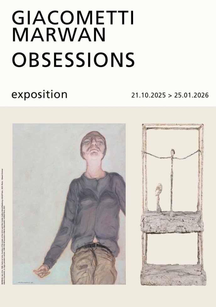 « Giacometti / Marwan. Obsessions », à l'Institut Giacometti du 21 octobre 2025 au 25 janvier 2026, propose un dialogue inédit entre deux artistes qui, ayant choisi de créer dans un pays autre que leur pays de naissance – la France et l’Allemagne –, interrogent les questions de la modernité à partir de deux espaces culturels différents : l’Europe et le Moyen-Orient.