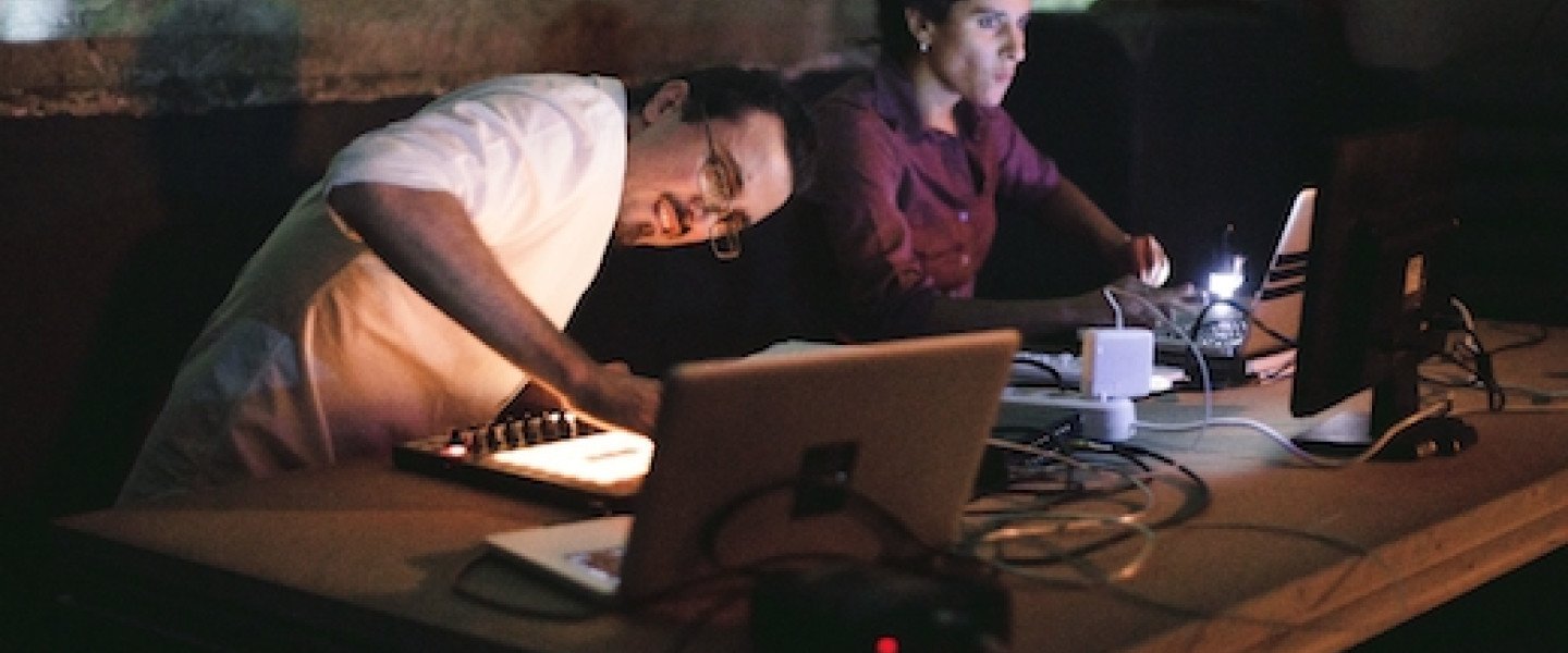 « C’est un projet qui a été réalisé à 4 mains et 2 têtes. Les rôles ont été prédéfinis dès le départ ; Randa à la vidéo et moi aux machines. Ce projet s’est déroulé de manière instinctive, le partage des tâches s’est fait naturellement. Cela fait un an et demi que l’on travaille sur celui-ci et ce sera une première pour le quartet à Paris !», répond Wael Koudaih. « Je suivais Wael sur la scène artistique libanaise de loin et un jour je lui ai confié que j’avais bien envie de collaborer avec lui ; deux mois plus tard, il revient vers moi avec une idée. Elle m’a beaucoup plu et on a commencé à travailler chacun de notre côté sur nos parties respectives pendant 6 mois.», ajoute Randa Mirza.