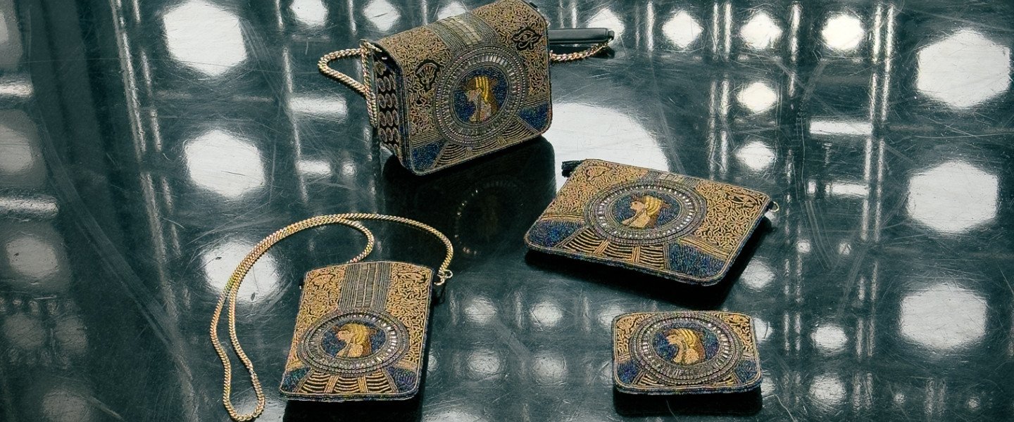 Pochette téléphone, porte-monnaie, pochette, sac baby-bag : de véritables accessoires bijoux, pièces d’exception à l’allure contemporaine, chacun entièrement brodé à la main, perle après perle.